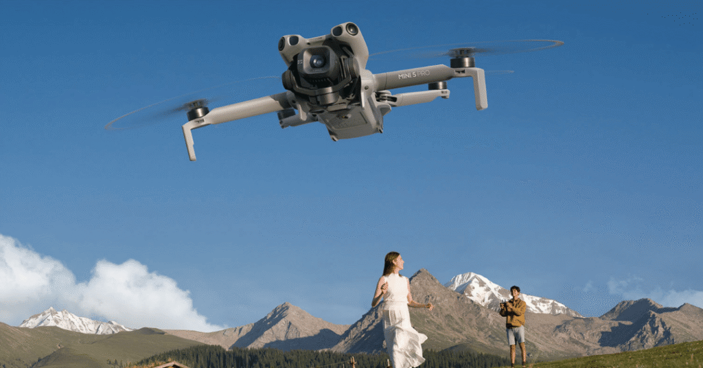 To jednak nie tylko przepisy. Mini 5 Pro oferuje wykrywanie przeszkód 360°, zaawansowane śledzenie AI i mapowanie otoczenia w czasie rzeczywistym, co pozwala na płynne, profesjonalne ujęcia. Dodatkowo zapis 10-bitowy w profilu log daje ogromne możliwości w postprodukcji bez utraty jakości.