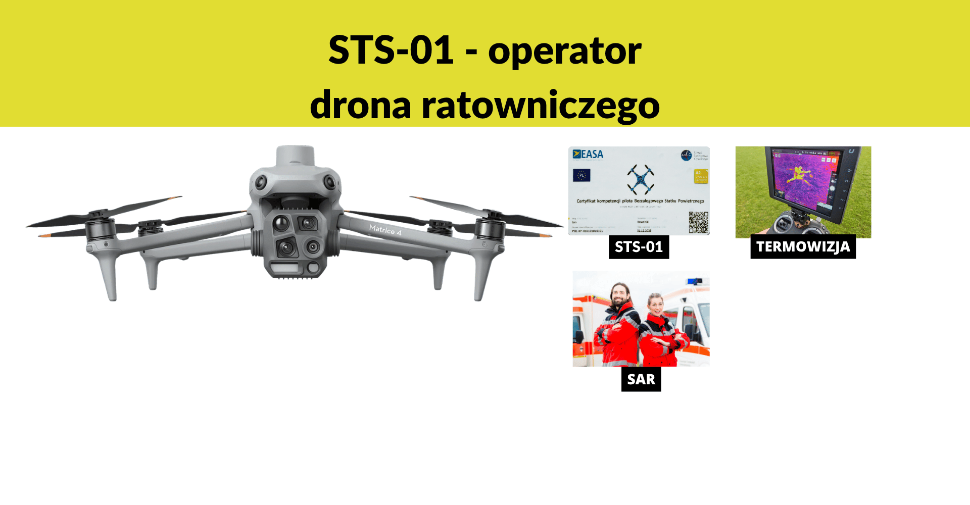 STS-01 w zakresie zielonych kompetencji cyfrowych: europejskie uprawnienia do wykonywania lotów w zasięgu wzroku wraz z rozwinięciem do umiejętności specjalistycznych z poszukiwań i ratownictwa oraz przetwarzania danych z kamery termowizyjnej.